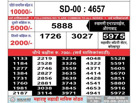 Maharashtra Weekly Lottery 4.15PM Result 26.08.2025