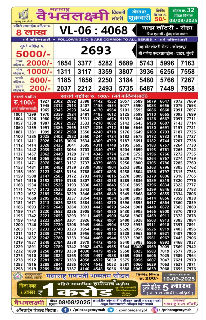 Maharashtra Weekly Lottery 4.15PM Result 08.08.2025