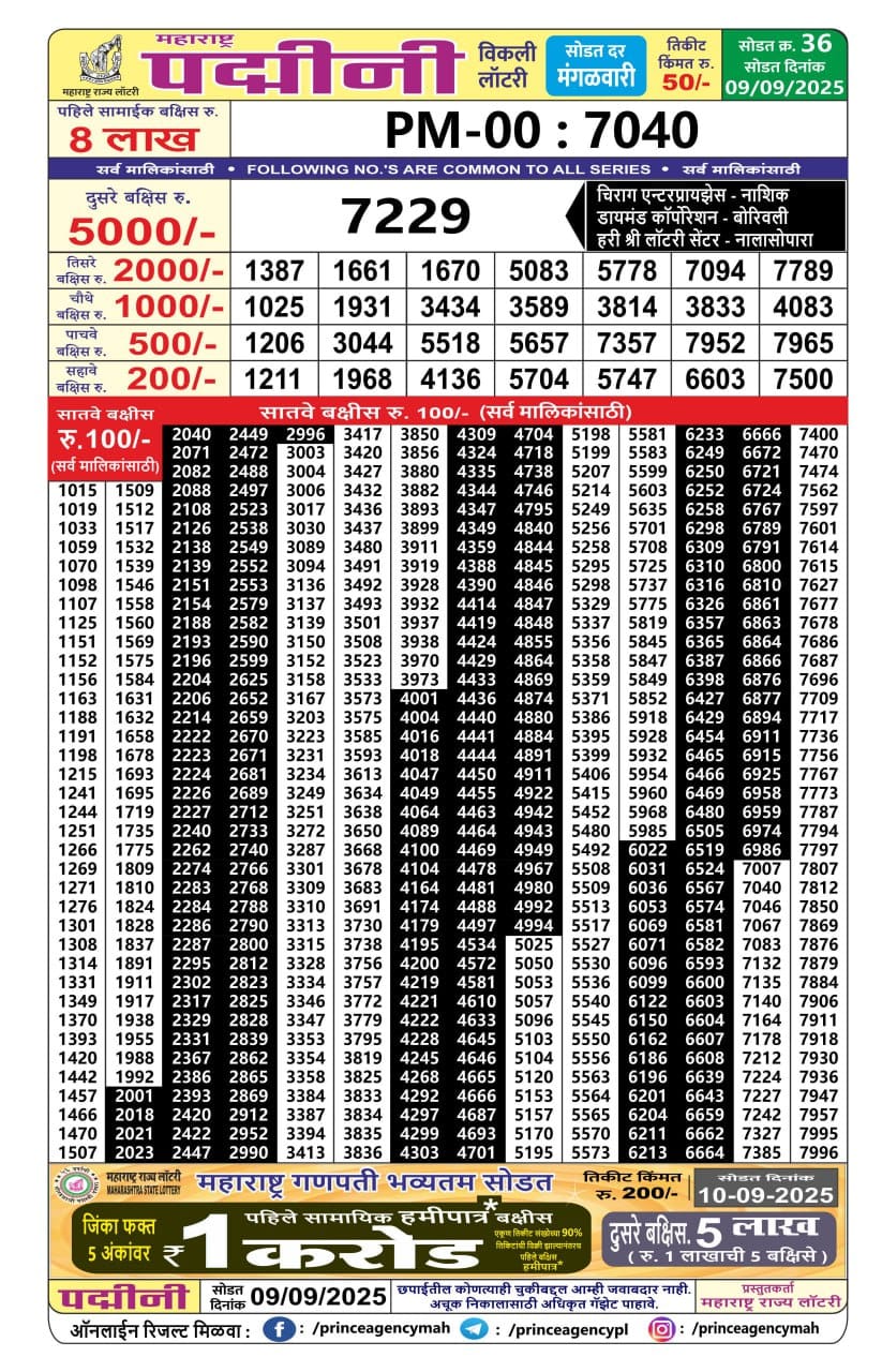 Maharashtra Weekly Lottery 4.15PM Result 09.09.2025
