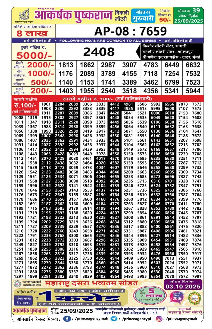 Maharashtra Weekly Lottery 4.15PM Result 25.09.2025