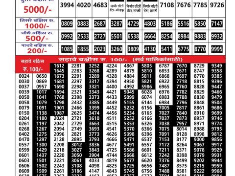 Maharashtra Weekly Lottery 4.15PM Result 19.08.2025