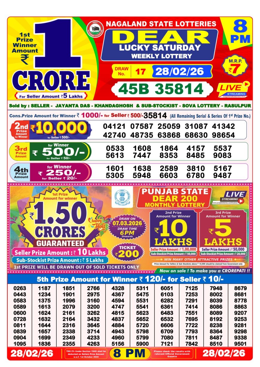 Nagaland State Dear Lottery 8PM Result 28.02.2026