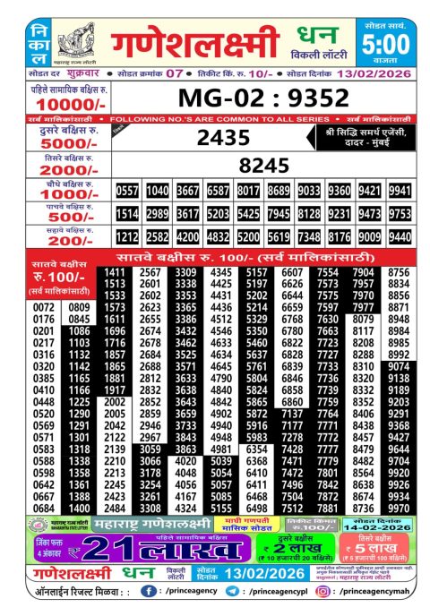 Maharashtra Ganesh Laxmi Lottery Result 13.02.2026