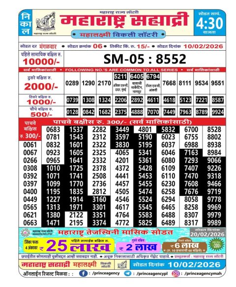 Maharashtra Sahyadri Lottery Result 10.02.2026