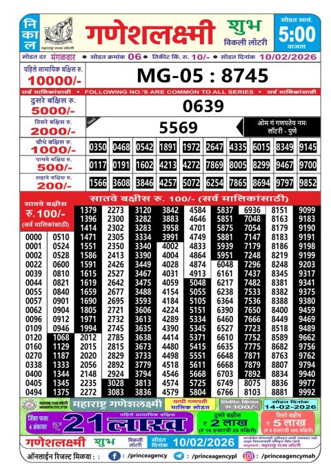 Maharashtra Ganeshlaxmi Weekly Lottery Result 10.02.2026
