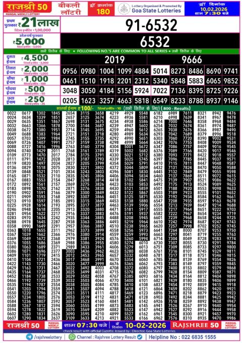 Rajshree 500 Monthly Lottery Result 10.02.2026 Live Now