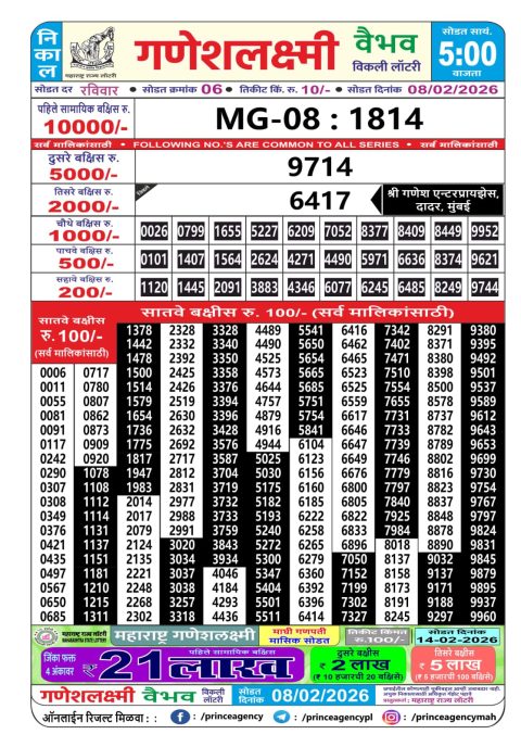 Maharashtra Ganeshlaxmi Weekly Lottery Result 08.02.2026