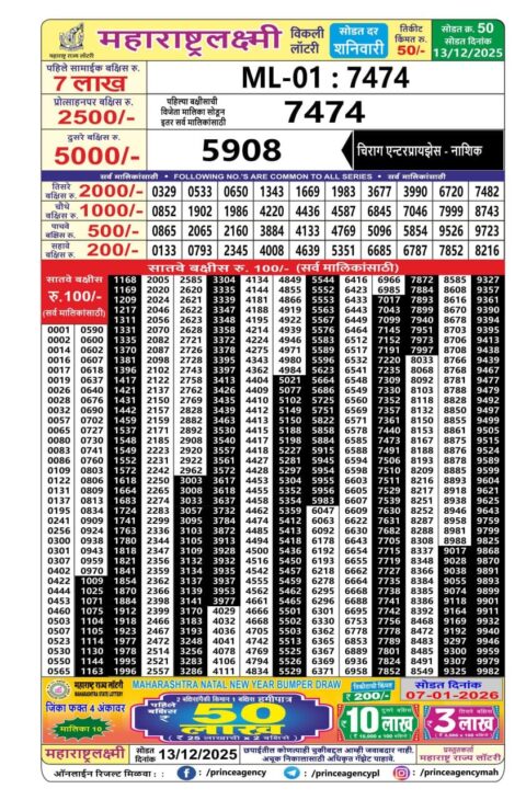 Maharashtra Laxmi 4.15PM Weekly Lottery Result 13.12.2025
