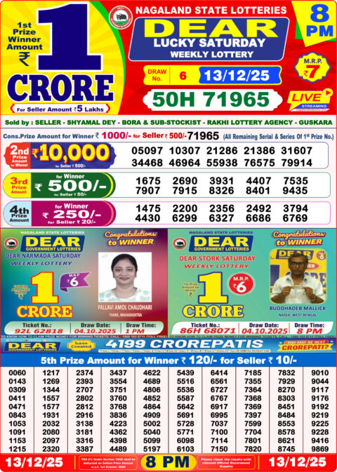 Nagaland State Dear Lottery 8PM Result 13.12.2025