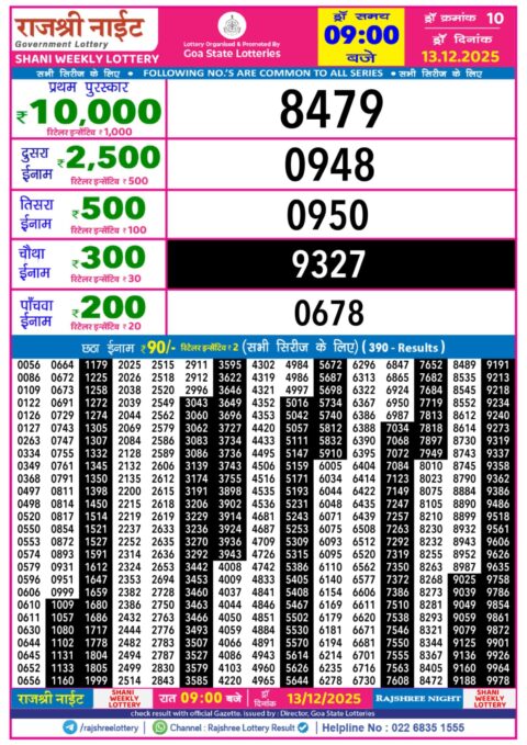 Rajshree Night Lottery 9pm Result 13.12.2025