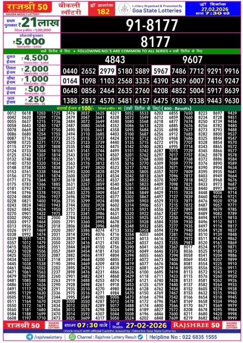 Rajshree 50 Weekly Lottery 7:30PM Result 27.02.2026
