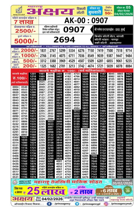 Maharashtra Akshay Weekly Lottery Draw Result 04.02.2026