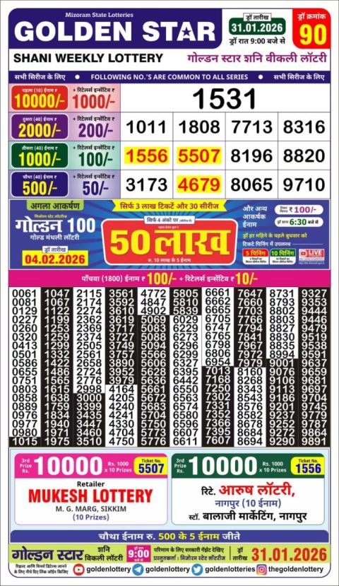 Golden Star Lottery 9PM Result 31.01.2026