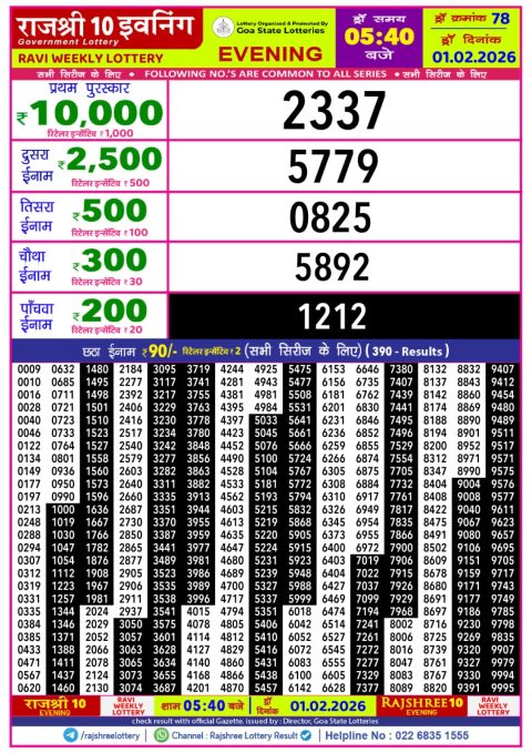 Rajshree 10 Daily Lottery 5.40PM Result 01.02.2026