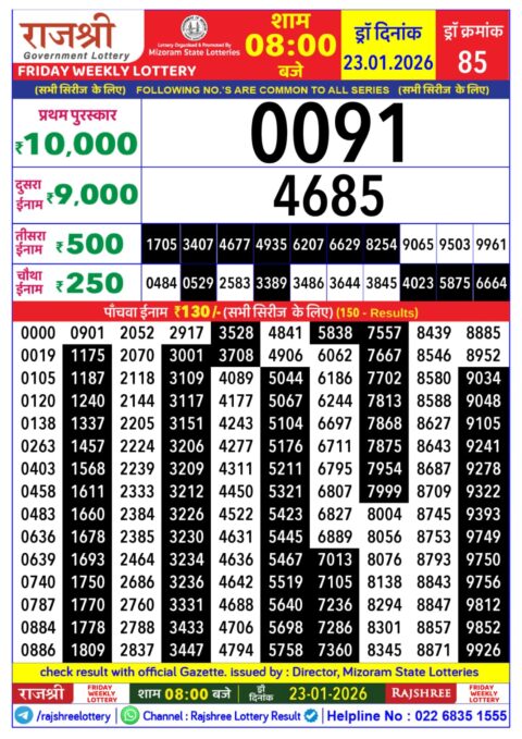 Rajshree 50 Weekly Lottery 7:30PM Result 23.01.2026