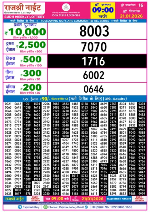 Rajshree Night Lottery 9pm Result 21.01.2026