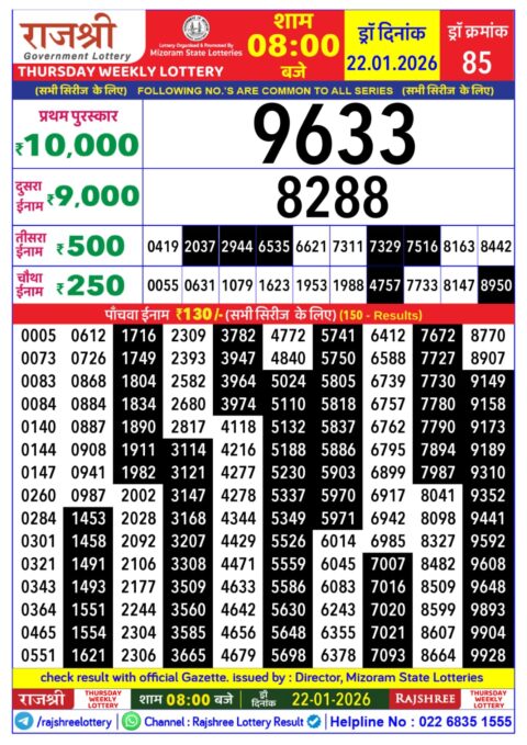 Rajshree 50 Monthly lottery Result 22.01.2026 Check Here