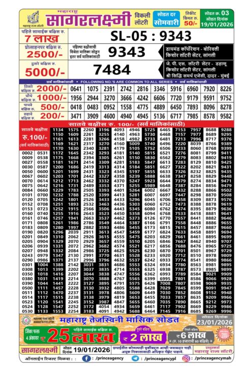 Maharashtra Sagar Laxmi Weekly Lottery Result 19.01.2026