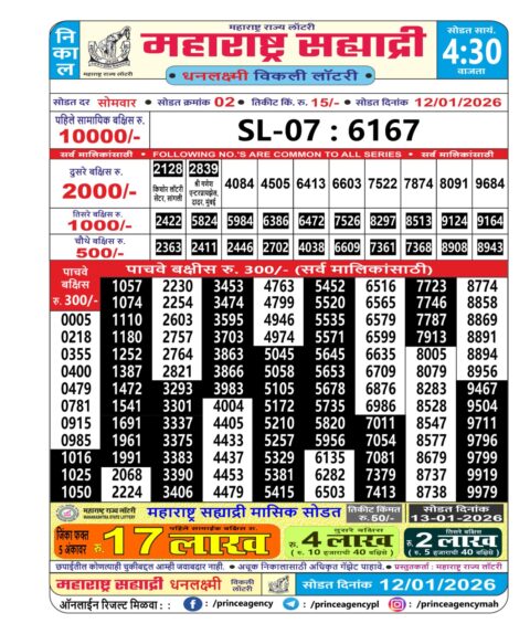 Maharashtra Sahyadri Weekly Lottery Result 12.01.2026