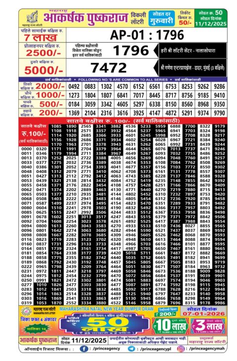 Rajshree 50 Weekly Lottery 7:30PM Result 11.12.2025
