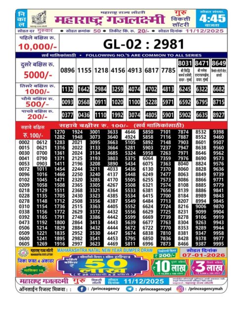 Maharashtra Gajlaxmi Weekly Lottery 4.45PM Result 11.12.2025