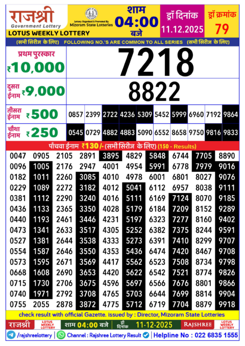 Rajshree Daily Lottery 4PM Result 11.12.2025