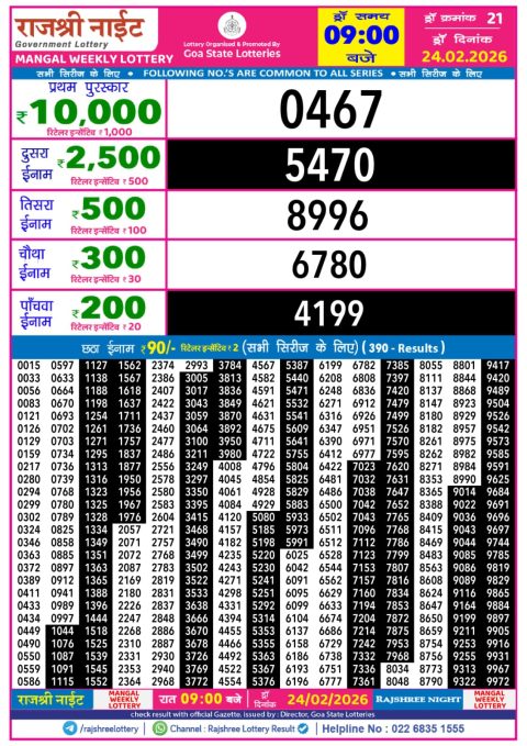 Rajshree Night Lottery 9pm Result 24.02.2026