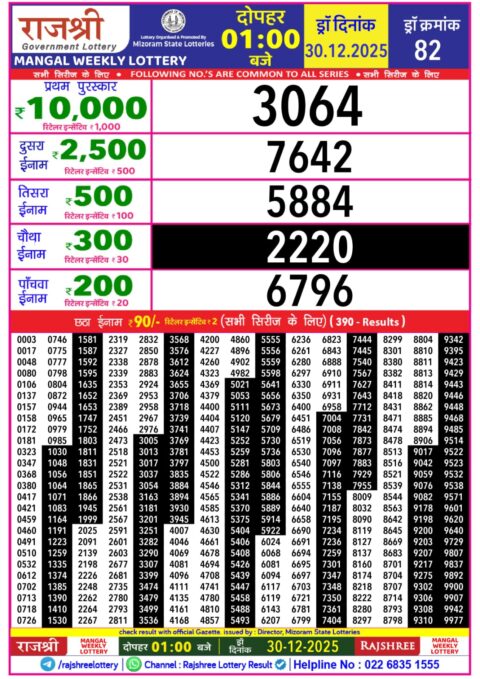 Rajshree Daily Lottery 1PM Result 30.12.2025
