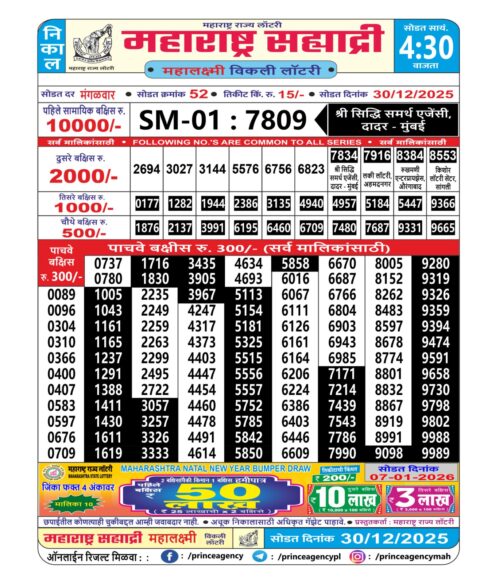 Maharashtra Sahyadri Weekly Lottery Result 30.12.2025