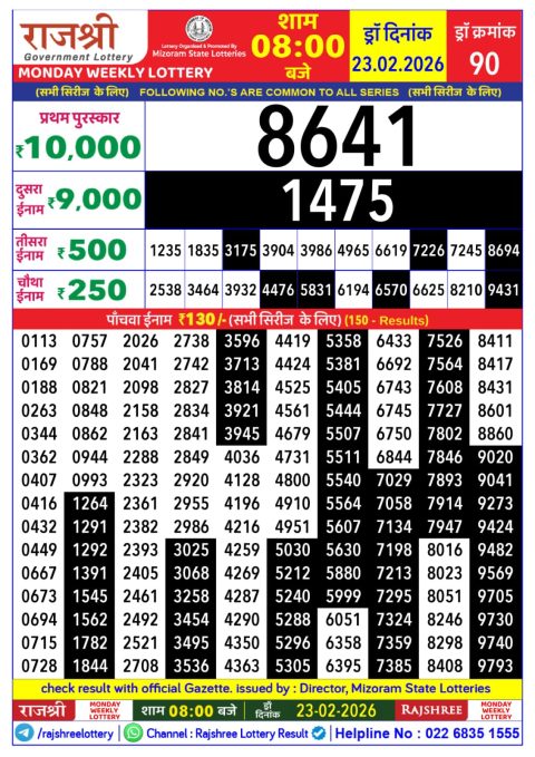 Rajshree 50 Weekly Lottery 7:30PM Result 23.02.2026