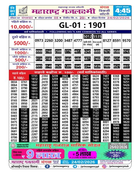 Maharashtra Gajlaxmi Weekly Lottery Result 24.02.2026