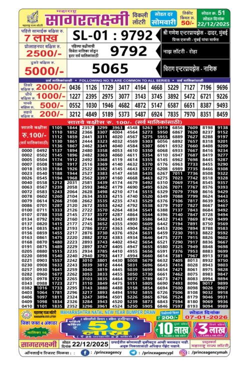 Maharashtra Sagarlaxmi Lottery Result 22.12.2025