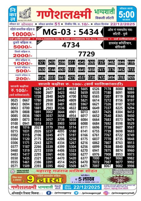 Maharashtra Ganeshlaxmi Weekly Lottery Result 22.12.2025