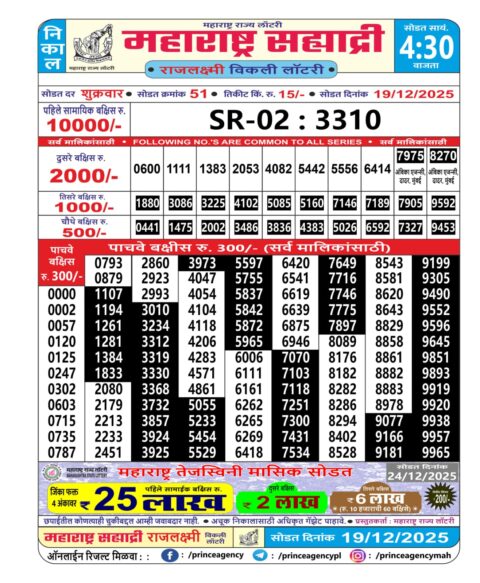 Maharashtra Sahyadri Weekly Lottery Result 19.12.2025