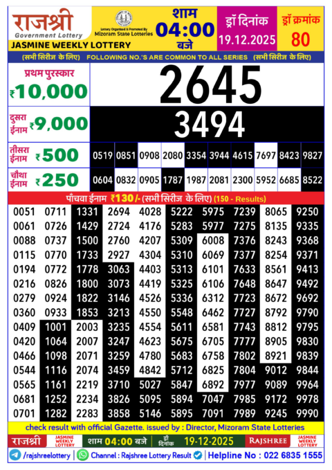 Rajshree Daily Lottery 4PM Result 19.12.2025