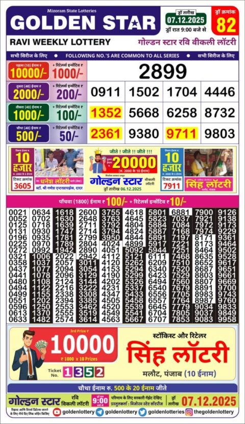 Golden Star Lottery 9PM Result 07.12.2025