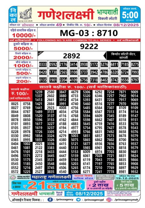 Labh Laxmi Daily Lottery 4PM Result 08.12.2025
