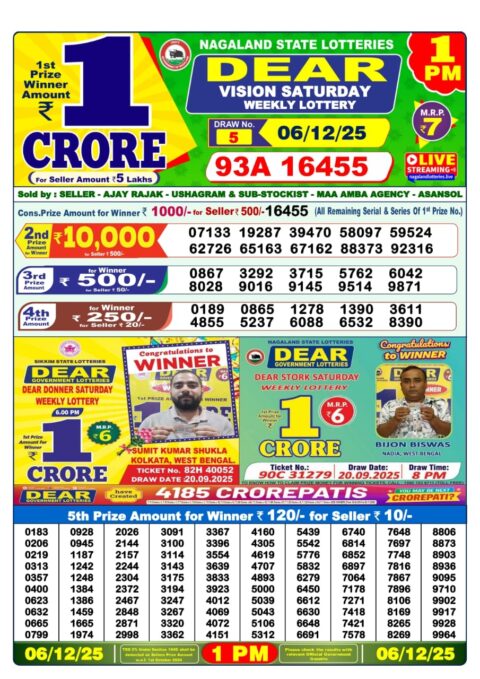 Nagaland State Dear Lottery 1PM Result 06.12.2025