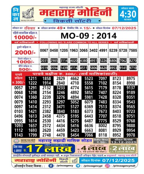 Maharashtra laxmi 4.15PM Weekly Lottery Result 06.12.2025