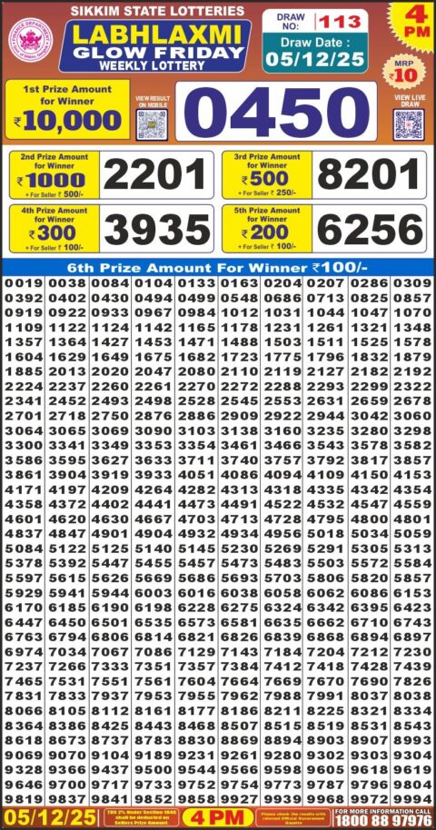 Sikkim State Dear Lottery 6PM Result 05.12.2025