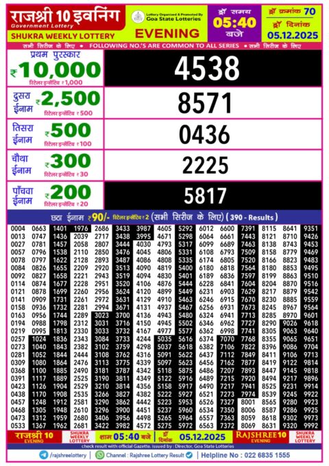 Rajshree Daily Lottery 1PM Result 05.12.2025