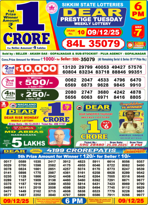 Sikkim State Dear Lottery 6PM Result 09.12.2025