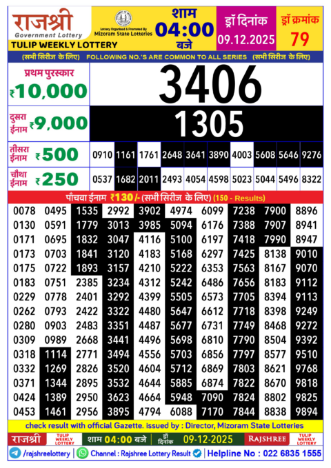 Rajshree 500 Monthly Lottery Result 09.12.2025 Check out