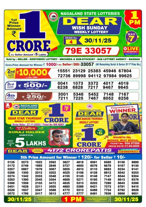 Nagaland State Dear Lottery 1PM Result 30.11.2025
