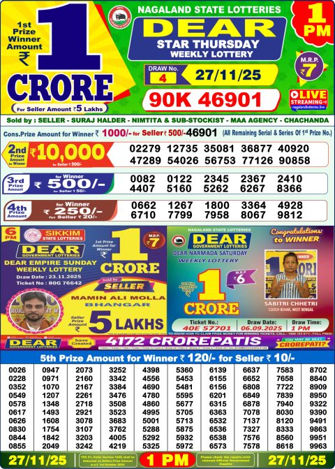 Nagaland State Dear Lottery 1PM Result 27.11.2025