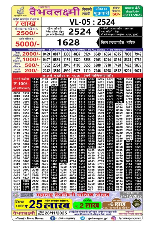 Maharashtra Vaibhav 4.15PM Weekly Lottery Result 28.11.2025