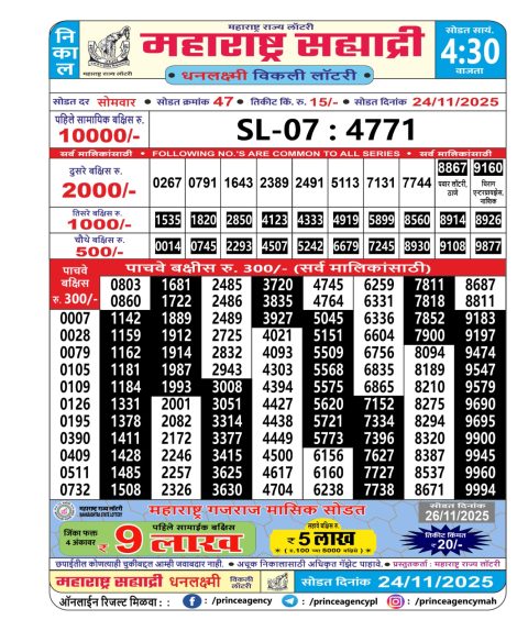 Maharashtra Sahyadri Weekly Lottery 4.30PM Result 24.11.2025