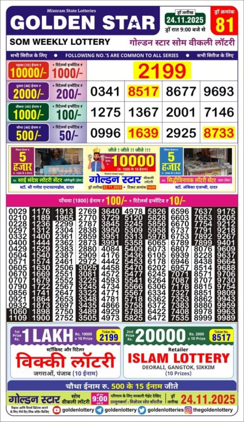 Golden Star Lottery 9PM Result 24.11.2025
