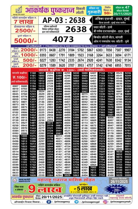 Maharashtra Akarshak 4.15PM Weekly Lottery Result 20.11.2025