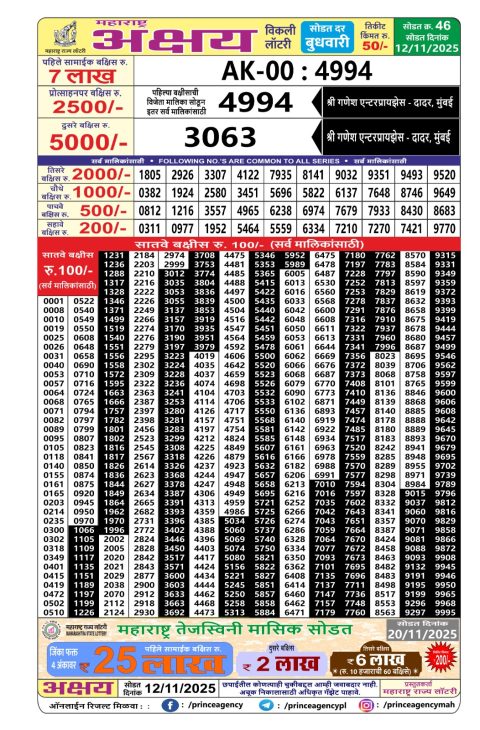 Maharashtra Akshay 4.15PM Weekly Lottery Result 12.11.2025